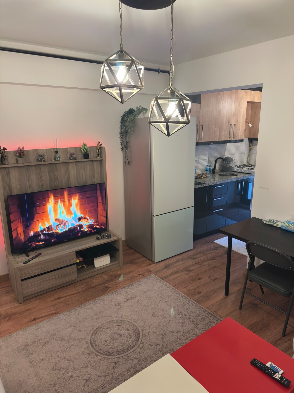 Te sentirás como en casa en nuestro moderno y cómodo apartamento de 1+1. Puedes disfrutar de una TV de pantalla grande e Internet rápido en nuestra amplia sala de estar con cómodos asientos, y puedes preparar fácilmente la comida que desees gracias al completo equipamiento de nuestra cocina. En nuestro dormitorio, una cómoda cama te espera para aliviar el cansancio del día. Tanto si estás aquí por trabajo como por vacaciones, todos los detalles han sido pensados para tu comodidad. Te espera una experiencia de alojamiento limpia, ordenada y tranquila.