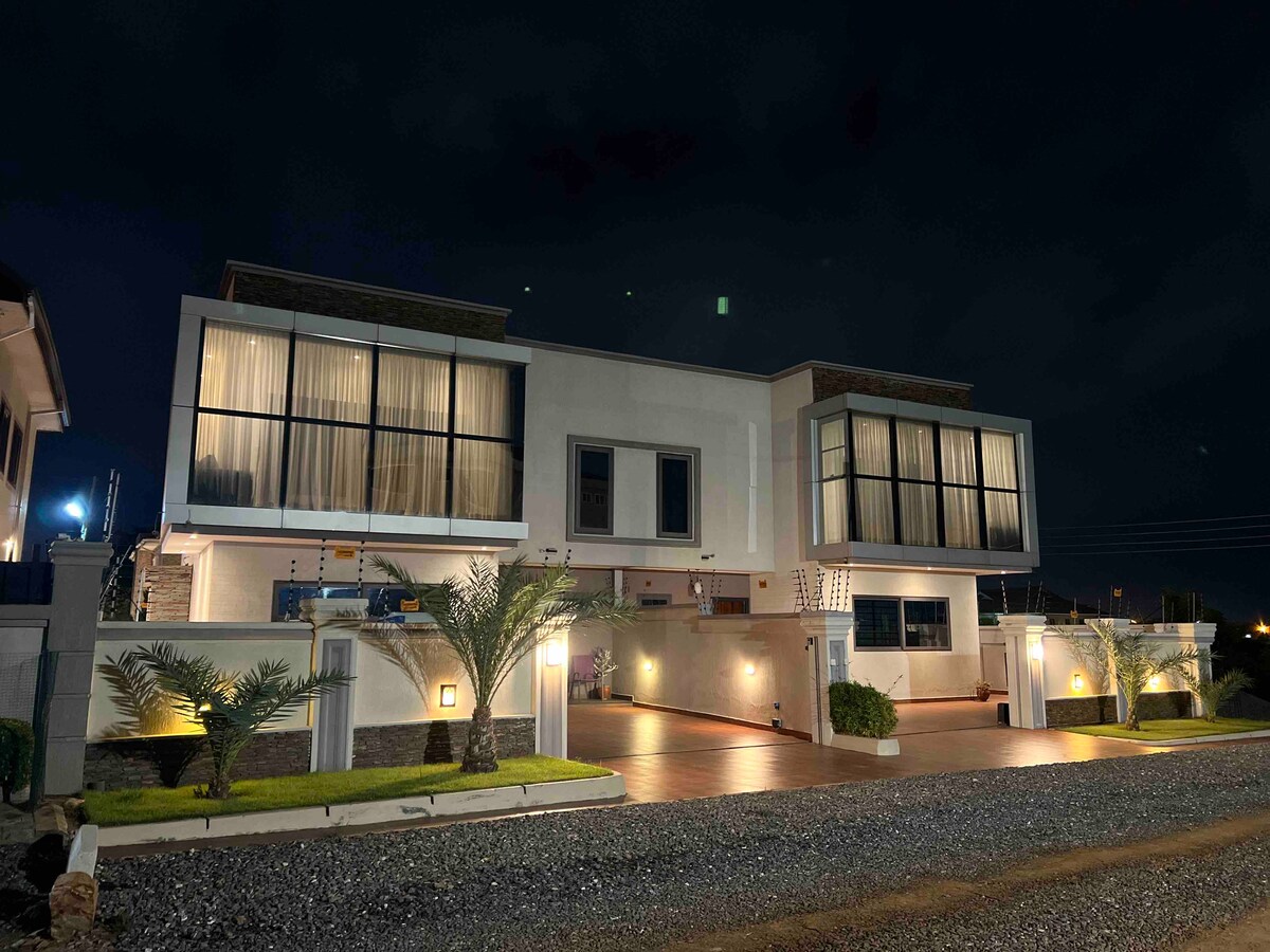 Escape to tranquility at this beautiful 5-bedroom all en-suite duplex, perfectly located in Tema Community 25 Annex, just behind Emef s Estate. The Space - 5 large bedrooms: one double bed in each - 5 ensuite bathrooms - Additional double sofa bed - Fully equipped kitchen - Parking space for up to 6 cars within the compound - 24/7 treated water and electricity - On-site security House Rules - Check-in: 15:00 - Check-out: 11:00 - Pets allowed - Smoking ok - Children welcome - Parties or events are welcome but must inform the host in advance additional charges and terms apply Nearby Attractions -Labadi Beach (~15 mins) - Kwame Nkrumah Memorial Park (~20 mins) - Makola Market (~20 mins) - Osu Oxford Street (~15 mins) - W.E.B. DuBois Centre (~10 mins) - National Museum of Ghana (~20 mins)