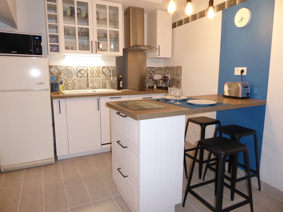 Magnífico apartamento reformado con porche y vistas al mar, en el corazón de las calas de Niolon. Situado en la 1 .ª planta de una auténtica casa de pueblo, este alojamiento con acceso independiente consta de dos dormitorios con camas dobles, un baño moderno, una acogedora sala de estar en la terraza y una cocina totalmente equipada. Disfrutará de un estacionamiento privado y de una zona de jardín común. Cada detalle ha sido renovado con cuidado y amor, para que se sienta como en casa.