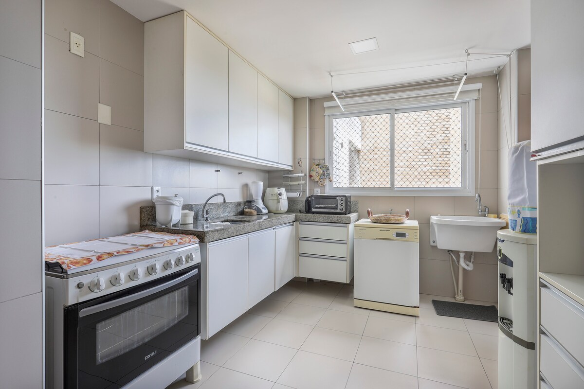 Apartamento de 3 dormitorios (1 suite), todos con aire acondicionado, 3 baños completos, 2 televisores, cocina equipada, lavadora, conserje las 24 horas, plaza de aparcamiento, amplio espacio de ocio, playa tranquila, barrio seleccionado y cerca de restaurantes y comodidades. Situado en la tranquila playa de Cotovelo, a menos de 10 km de Natal-RN. ¡Atención! Por el momento, las saunas están cerradas y el uso de las pistas solo está permitido durante el día.