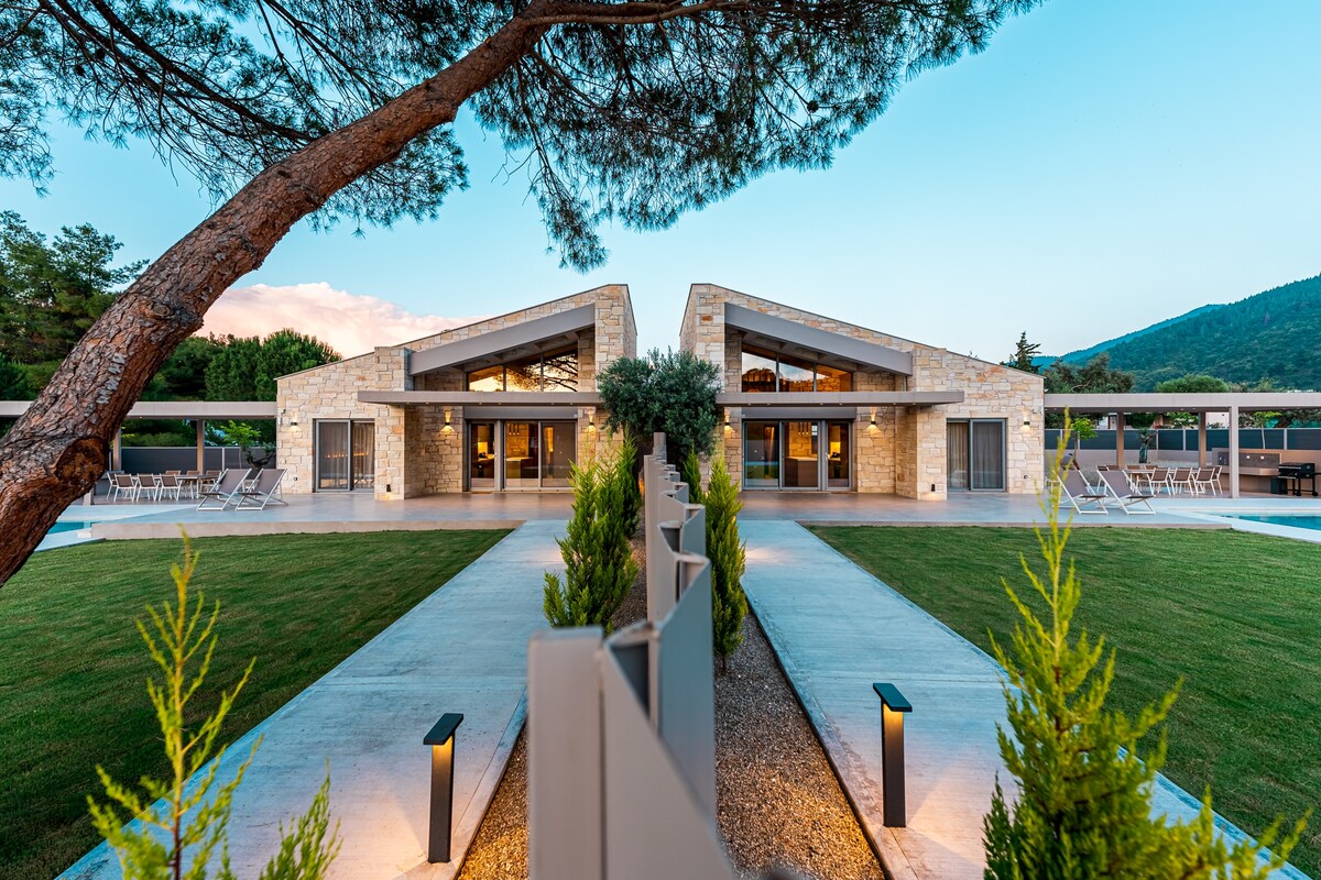 Una experiencia única en el corazón de Sithonia, entre los picos del Olimpo y Athos. En una propiedad de 15 acres con un olivar familiar de 200 años de antigüedad y acceso exclusivo a un cañón de belleza salvaje, construimos una residencia única en toda Grecia enteramente de piedras fluviales y marinas, rodeada por el azul del mar y el verde del bosque. Está a 5 minutos de las playas más famosas de Sithonia, Lagomandra, Elia, Spathies, Kalogria, Kovgiou.