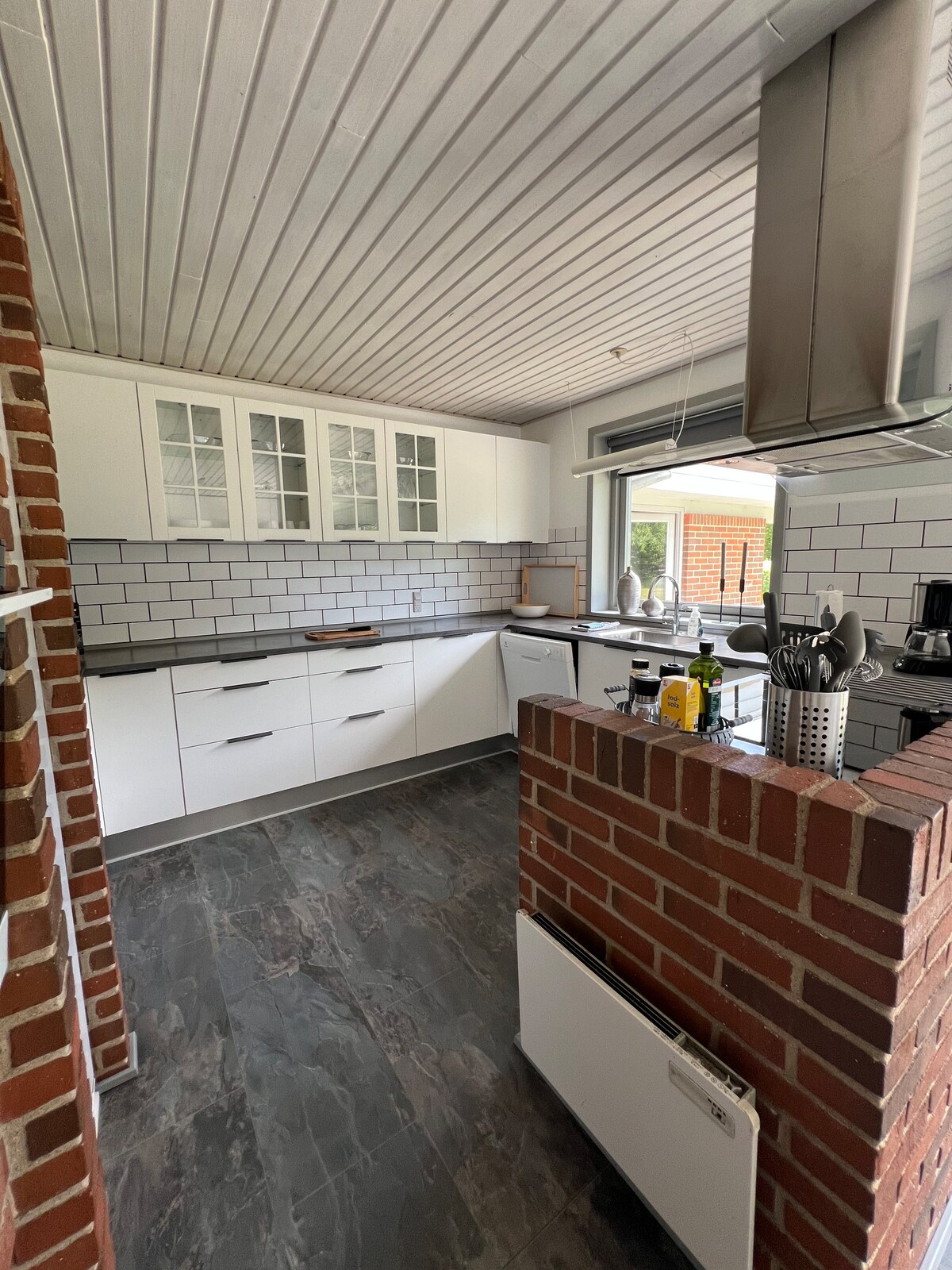Encantadora casa de verano con vistas panorámicas al puerto de Helmklit y al fiordo de Nissum. Cuenta con una amplia sala de estar y cocina con comedor, 4 dormitorios (2 dobles, 2 individuales), un baño grande y un baño de invitados. Lavadora y secadora en el pasillo. En el exterior, disfruta de una pequeña terraza cubierta junto al jacuzzi y una terraza más grande con vistas. Estación de carga para coches eléctricos disponible. Trae tu propia ropa de cama y toallas; se proporcionan edredones y almohadas. Electricidad facturada por consumo: 3,0 DKK/kWh