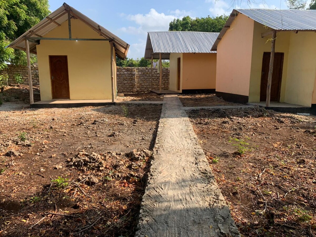 Tiny house, bedroom upstairs and basic kitchen downstairs. Huge compound that you can walk around. 100m access to sea that is covered with mangrove. Suitable for people seeking adventure. The place is 800 m from Anziwani mosque where you will be dropped if using public transport. 2km from Shimoni caves and 3km from three sisters caves. Very respectful staff of the ground that will assist you to stay comfortable. Have some domestic animals there that help make our garden organic.