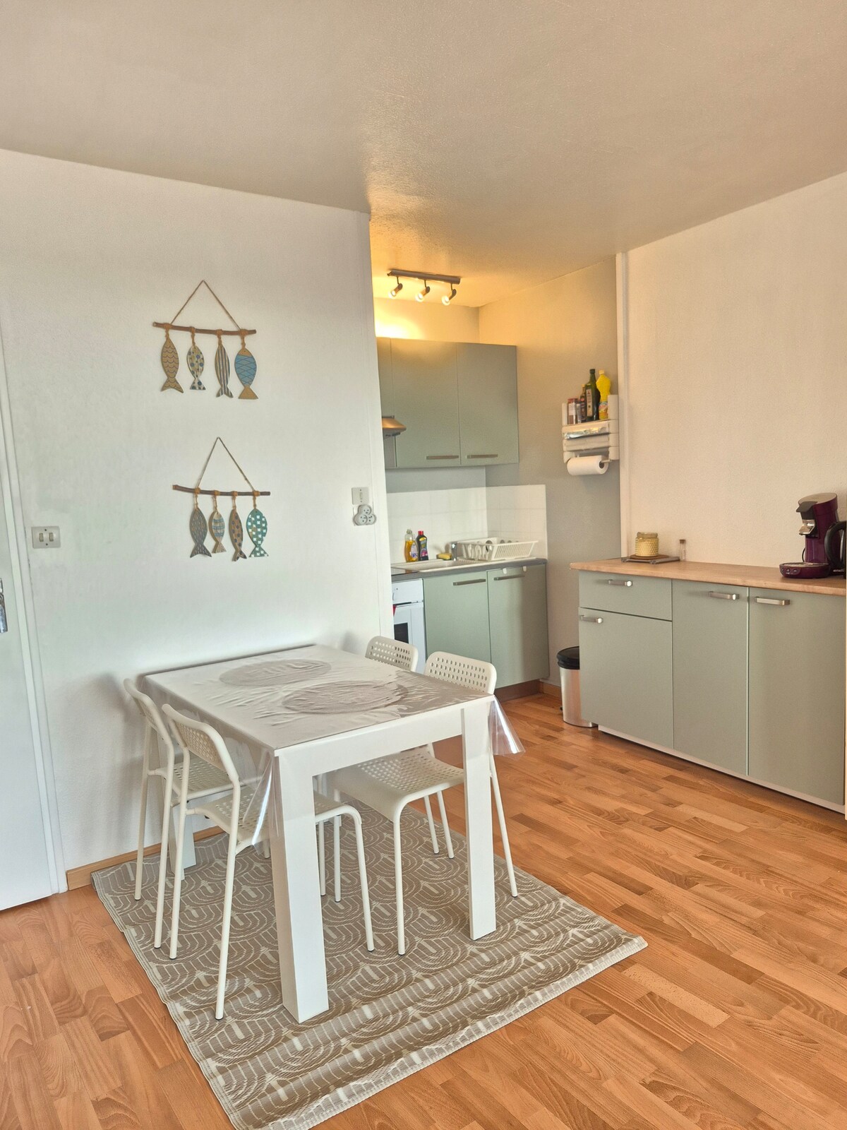 Apartamento de vacaciones muy soleado, en una residencia tranquila. El apartamento se encuentra en el segundo y último piso de un pequeño edificio. Cuenta con un balcón cerrado con agradables vistas laterales al mar. Incluye una plaza de aparcamiento al pie del apartamento. Consta de una cocina que da al salón con un sofá cama, un dormitorio con una cama de matrimonio y una cama supletoria. Su ubicación es perfecta para unas vacaciones con acceso directo a la playa.