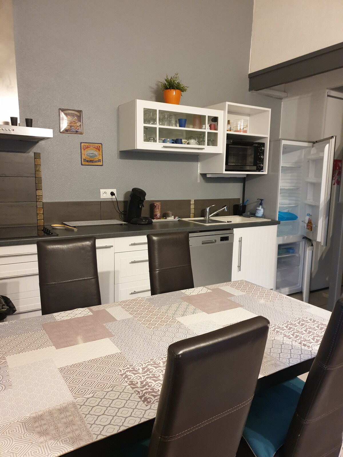 Entrarás en la villa por una de las 2 puertas francesas de estilo arquitectónico. Desde el momento de su entrada, dispone de la cocina equipada, equipada con nevera, lavavajillas, horno con función de microondas, 2 placas de cocción con indicación, cafetera, tostadora, hervidor de agua y toda la vajilla necesaria, para pasar una agradable estancia. En la misma habitación, se beneficia de una mesa de comedor y su zona de relajación.