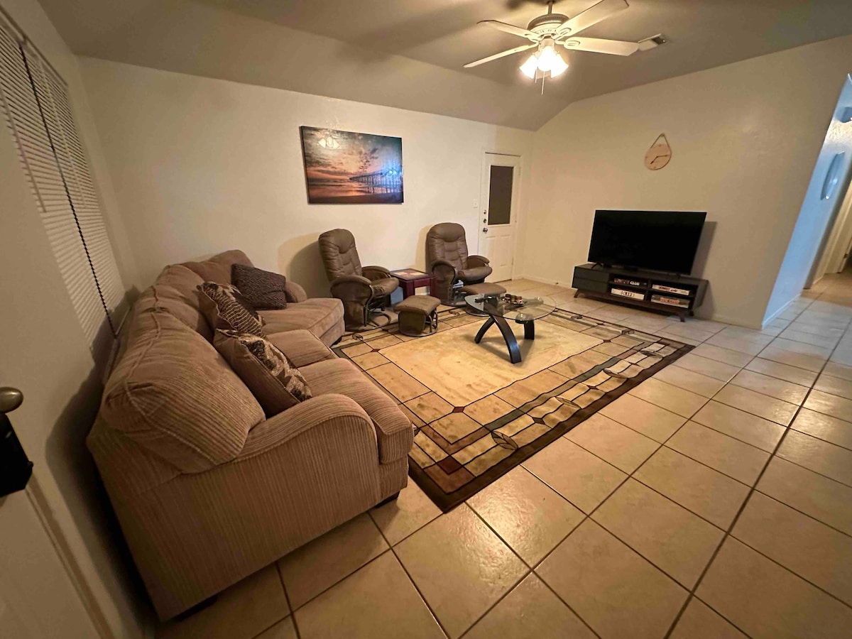 Sea nuestro huésped en esta hermosa casa de 3 dormitorios y 2 baños cerca de Fort Hood, centros comerciales y restaurantes. Dormitorio principal muy espacioso con baño privado lejos de los otros 2 dormitorios. Además, tiene un espacio de trabajo dedicado. Todas las habitaciones tienen TV inteligente y wifi disponibles. La cocina tiene hermosas encimeras de granito con muchos armarios. ¡El patio cercado privado es perfecto para una barbacoa al estilo de Texas!