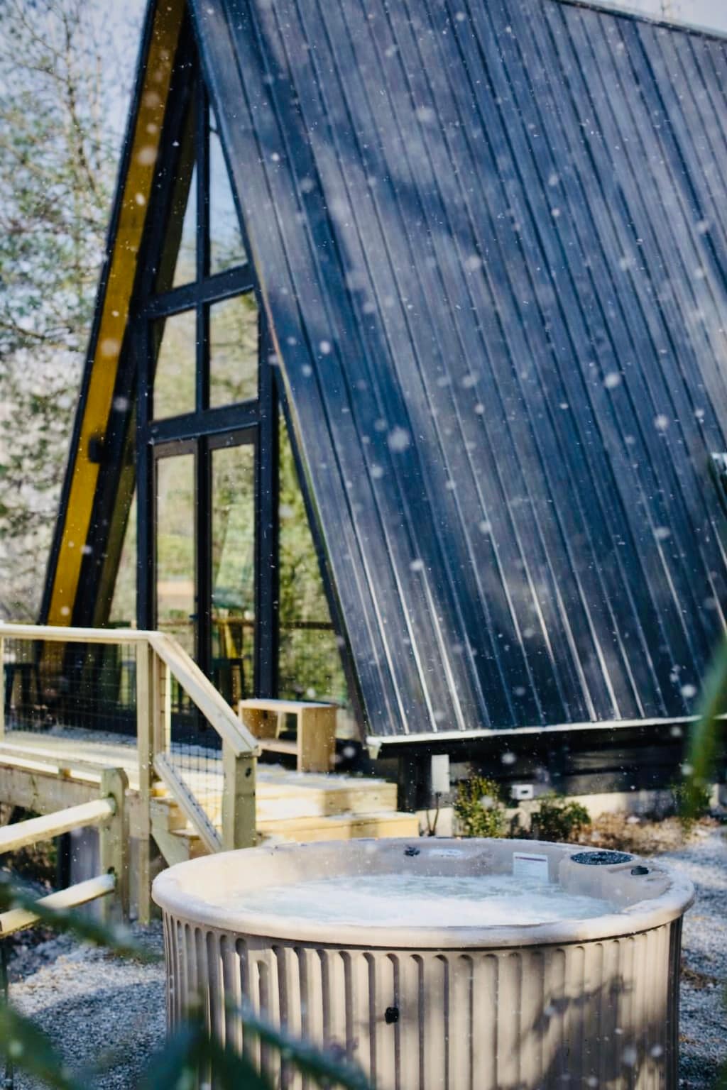 Cabaña para parejas con jacuzzi y chimenea exterior