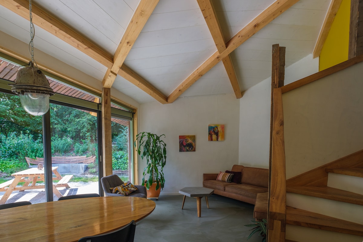 Casa natural única situada cerca de un bosque y un lago para nadar.