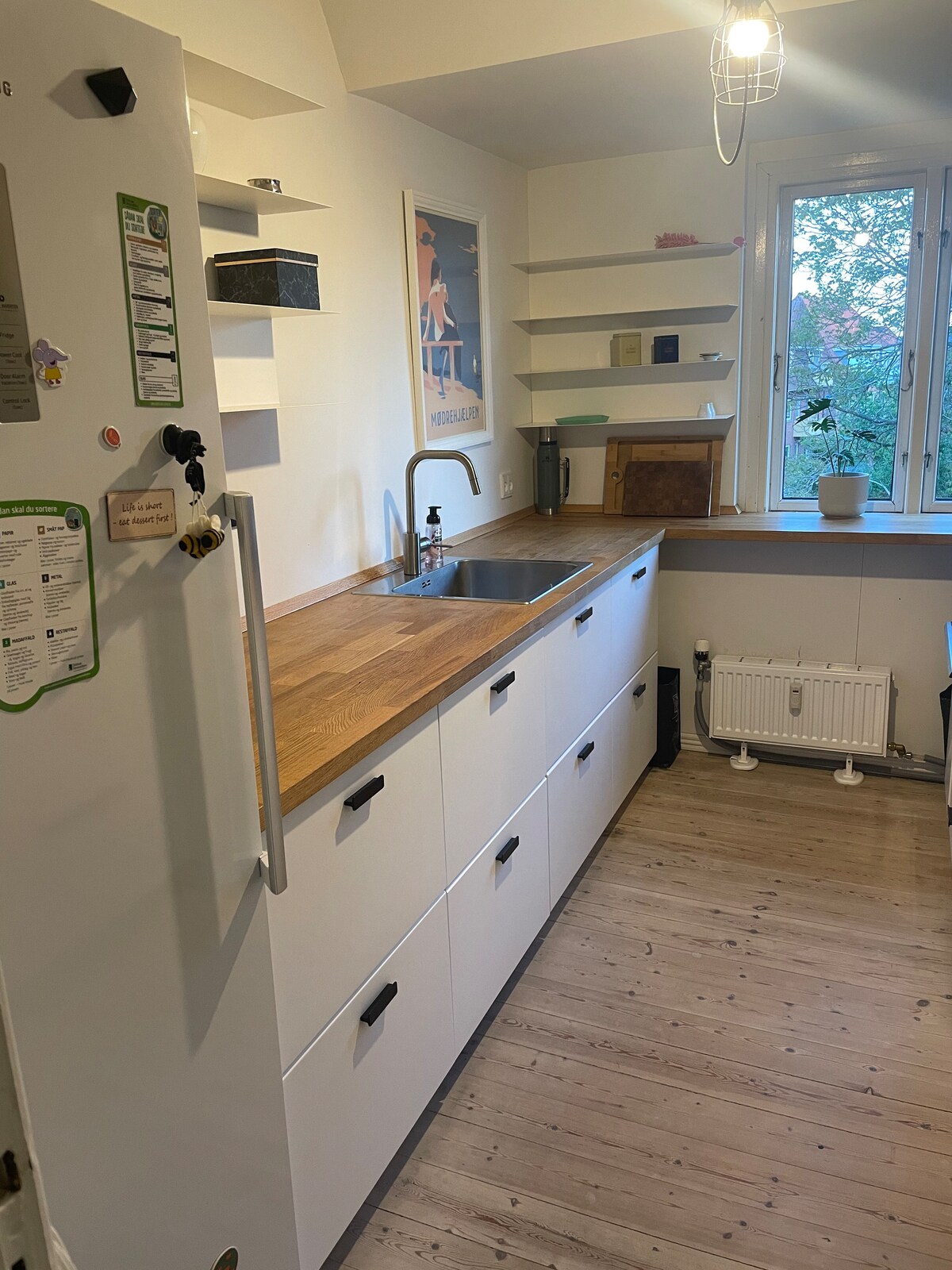 En el interior. Departamento luminoso y acogedor, situado en el centro de Nordborg. El apartamento incluye una sala de estar con un comedor, una cocina bien equipada y un baño con lavadora y secadora. Además, hay un dormitorio grande con una cama doble y un armario, así como 2 lugares para dormir en un sofá cama en el pasillo del apartamento. El departamento cuenta con una ubicación en el centro de Nordborg. No está lejos de tiendas, campos de golf, centro deportivo, playas, el universo Danfoss o Sønderborg.