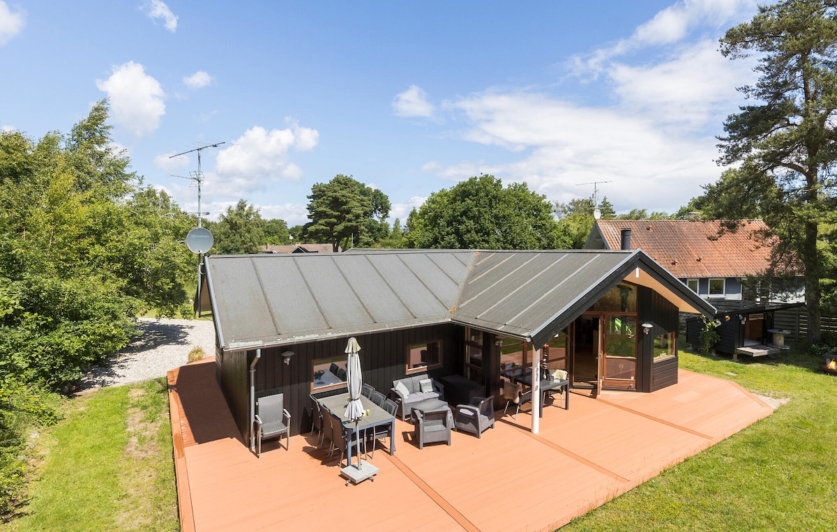 Una hermosa casa de campo familiar más nueva en el bosque - 109 m2 + 45 m2 anexo, jacuzzi al aire libre, bañera de hidromasaje y sauna. Hay terrazas alrededor de la casa, pista de voleibol de playa y zona de barbacoa. Hay una corta distancia al mar y 10 minutos a las hermosas playas de Øster Hurup y 5 minutos para ir de compras. La casa tiene capacidad para 8-10 personas. La casa está equipada con banda ancha de fibra y wifi que cubre toda la parcela natural de 3000 m2. En julio y agosto, el check-in es el sábado. Puede haber algunos insectos en ciertos períodos.