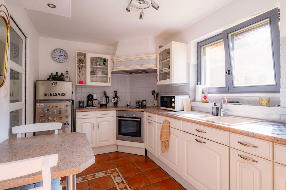 ¿Está de paso por Alsacia para las vacaciones? ¿Un fin de semana entre amigos, en pareja o solo? ¿o por motivos profesionales? ¡Este capullo es para usted! Como Chez Soi es un bonito apartamento de 2 habitaciones de unos 40 m² cerca de los pueblos alsacianos más bellos y a 20 minutos de Estrasburgo. El alojamiento le dará una cálida bienvenida después de un hermoso día de sensación en Europa-Park, un paseo por los Vosgos, o después de un vientre bien lleno después del descubrimiento de la Ruta del Vino