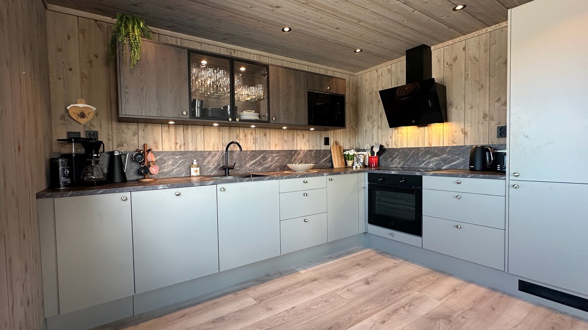 Cabaña de clase alta con la vista más impresionante que puedas imaginar, en cualquier época del año. Con todos los servicios que deseas y necesitas. La cabaña tiene cuatro dormitorios con cómodas camas y excelentes vistas. El salón es espacioso y tiene una solución abierta a la cocina y el comedor. Hermosos y cómodos muebles por todas partes. Dos baños con inodoros y duchas. Media de clase alta y banda ancha inalámbrica de clase alta. Una bonita área al aire libre con muebles disponibles.