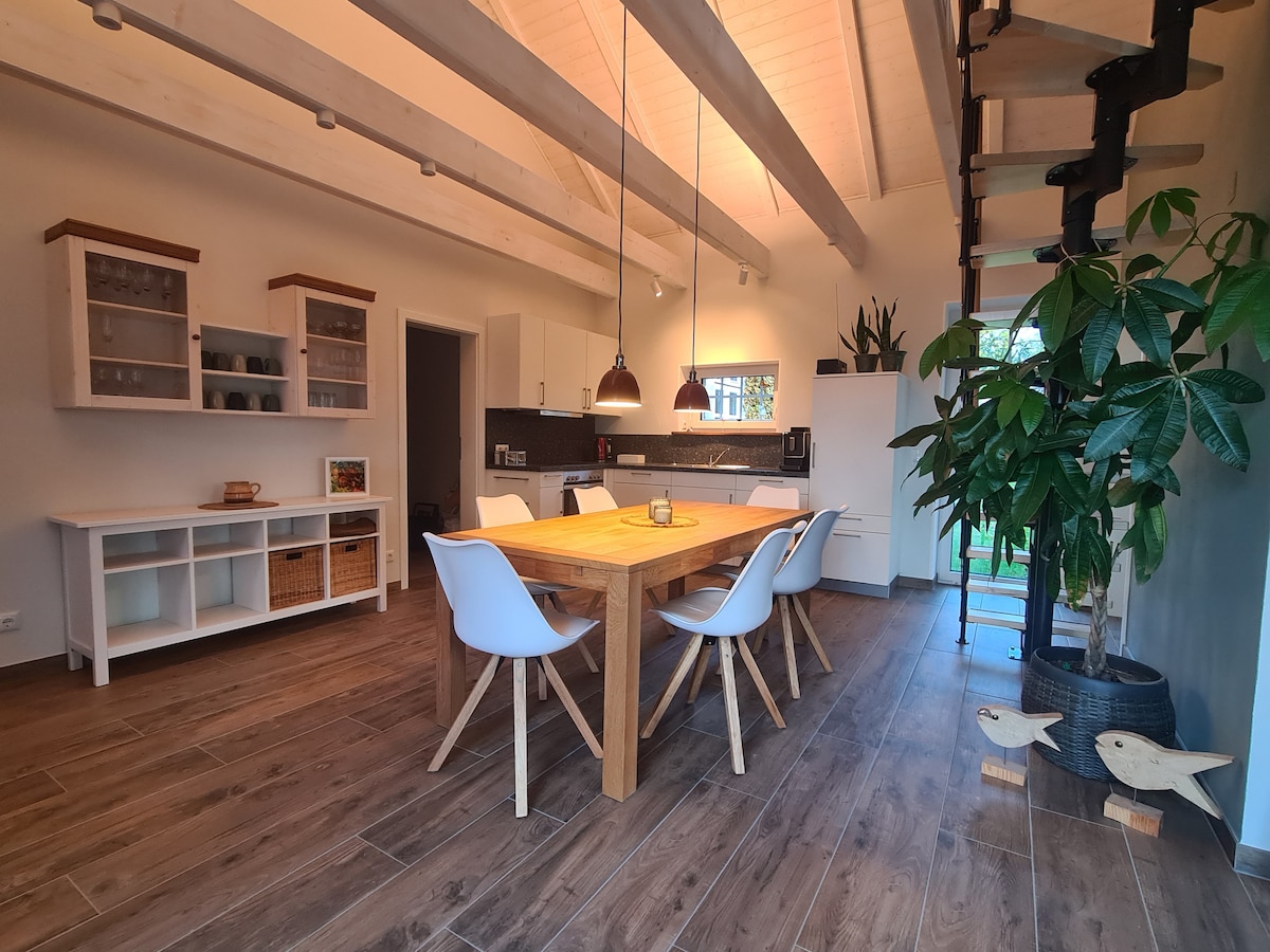 Ubicado a pocos pasos del puerto de Flensburg y del centro de la ciudad, este apartamento de 40 metros cuadrados te invita a combinar el estilo histórico de un antiguo molino de viento con la comodidad de la vida moderna. Las vigas de madera resistentes reviven la historia, mientras que la decoración moderna de estilo escandinavo te permite disfrutar de una estancia cómoda. Explora el centro de Flensburg, disfruta de playas de arena y carriles bici de la costa del mar Báltico, o haz un viaje a la cercana Dinamarca.