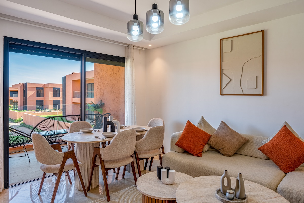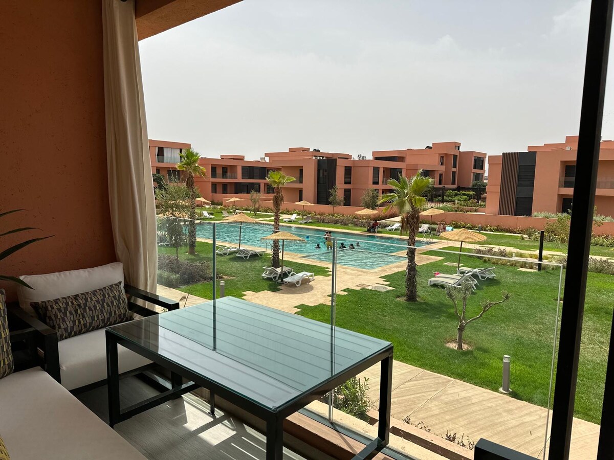 Marrakech Luxury 2BR Vista a la piscina/Terraza/Trabajo remoto