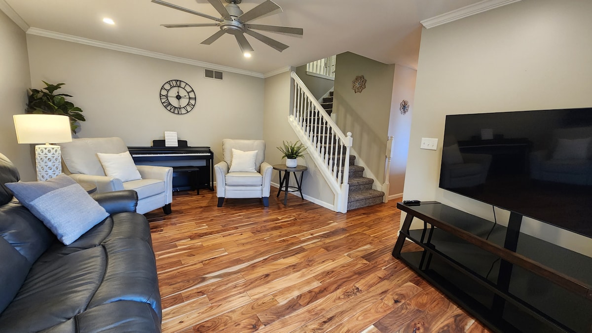 Acogedora casa que «¡te hace sentir como en casa!» ¡Mucho espacio en este bungalow para una escapada relajante, un viaje de negocios o eventos familiares y de amigos! Actualizado con decoración moderna, lujosas sábanas y ropa de cama, vallado en el patio, a 1/2 milla del centro de la ciudad; ideal para pasear, cenar y comprar. Todo en el alojamiento se eligió pensando en la comodidad. ¡La ubicación, el ambiente de la casa, la comodidad y el espacio para alojar a amigos y familiares son los favoritos de los huéspedes!