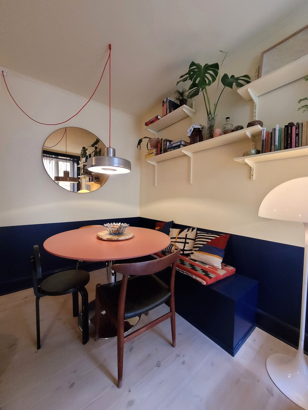 Bienvenido a mi acogedor y exclusivo apartamento en el histórico barrio de Vibekevang, entre Østerbro y Nørrebro. Este oasis de 74m ² es mi hogar personal, lleno de cerámica hecha a mano y toques artísticos. La sala de estar de temática verde cuenta con un sofá grande, alfombra marroquí y cerámica única. El dormitorio rosa ofrece un ambiente romántico y relajante. La cocina y el baño reflejan el estilo típico de Copenhague. Ideal para 2 personas, pero también puede alojar a 3 personas, incluida una cama plegable adicional.