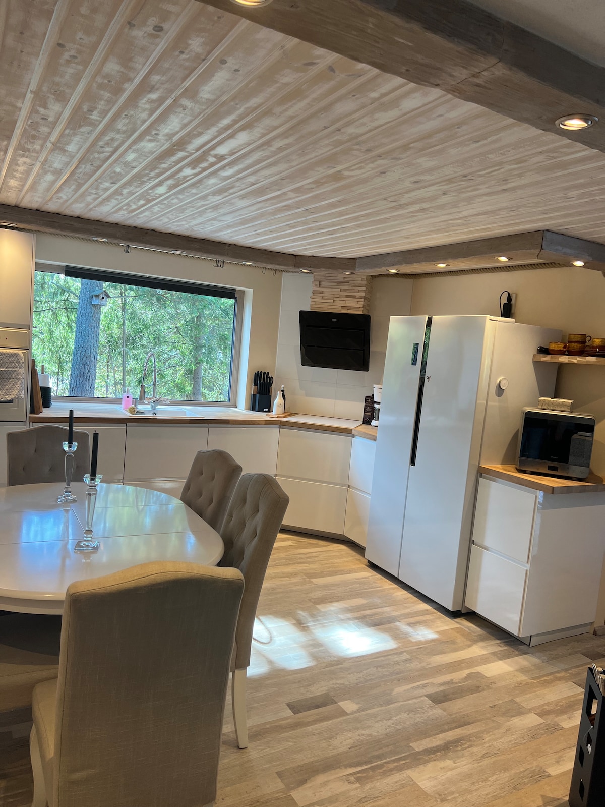 Tómatelo con calma en esta escapada única y tranquila. Aquí puedes disfrutar de una hermosa naturaleza durante todo el año, tener un momento en la sauna y saltar en la bañera exterior. Incluso puedes elegir tener agua tibia o frío en la bañera. En la casa principal encuentras una chimenea agradable y fácil de usar para que tu noche sea acogedora y cálida. Las camas son cómodas tanto en la casa principal como en la de los huéspedes. Comienza la mañana con un excelente café, hecho en la cocina bien equipada y disfruta del resto del día.