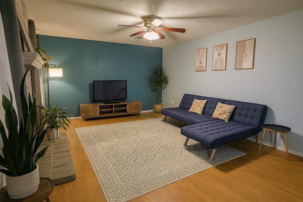 Settle into our vibrant and inviting space in North Austin, where comfort meets convenience. Whether you’re visiting for business, exploring the city, or just looking for a relaxing place to recharge, this thoughtfully equipped stay has everything you need to feel at home. ✔ Sleeps 4 – Bedroom + Living Room ✔ Spacious, Open-Concept Layout ✔ Fully Stocked Kitchen ✔ In-Unit Washer & Dryer ✔ Smart TVs with Roku Access ✔ Fast & Reliable Wi-Fi ✔ On-Site Perks: Gym, Pool, Free Parking