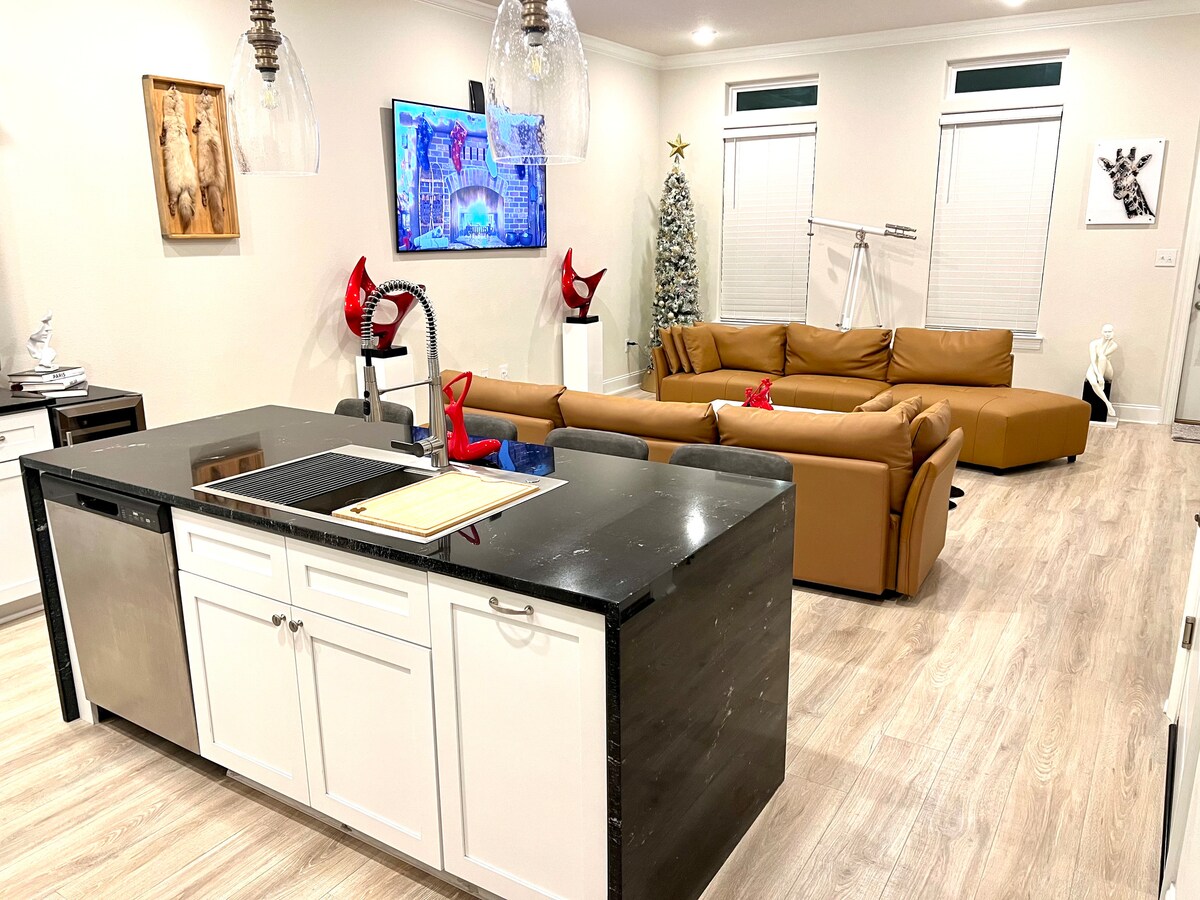 Built in 2023, This stylish place to stay is perfect for groups , company travelers, family outings, ect.. Wake up and watch the dolphins, shrimp boats are watch the sunsets in the evening, 2 story home, modern luxury finishing, 3 bedrooms, 3 bathrooms, sleeps 6 comfortably, 2 large couch’s if needed, extra pillows and blankets stocked, located in downtown, easy access to restaurants, parking rite out front, come enjoy ! Full home service rental, just pack ur bags, check out. We handle it all !