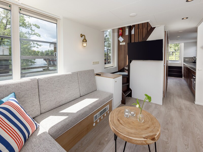 Discover the charm of water life on this comfortable Houseboat of 60 m2 with sauna and hottup in the beautiful harbor of the Maasbommel water sports center. With all modern amenities on board and an upper deck with cozy seating, the Houseboat offers a unique experience. Enjoy the unobstructed view of the inland lake from the terrace, the nearby lake is a paradise for water sports enthusiasts. Pets and smoking not allowed. Mobile air conditioning available.