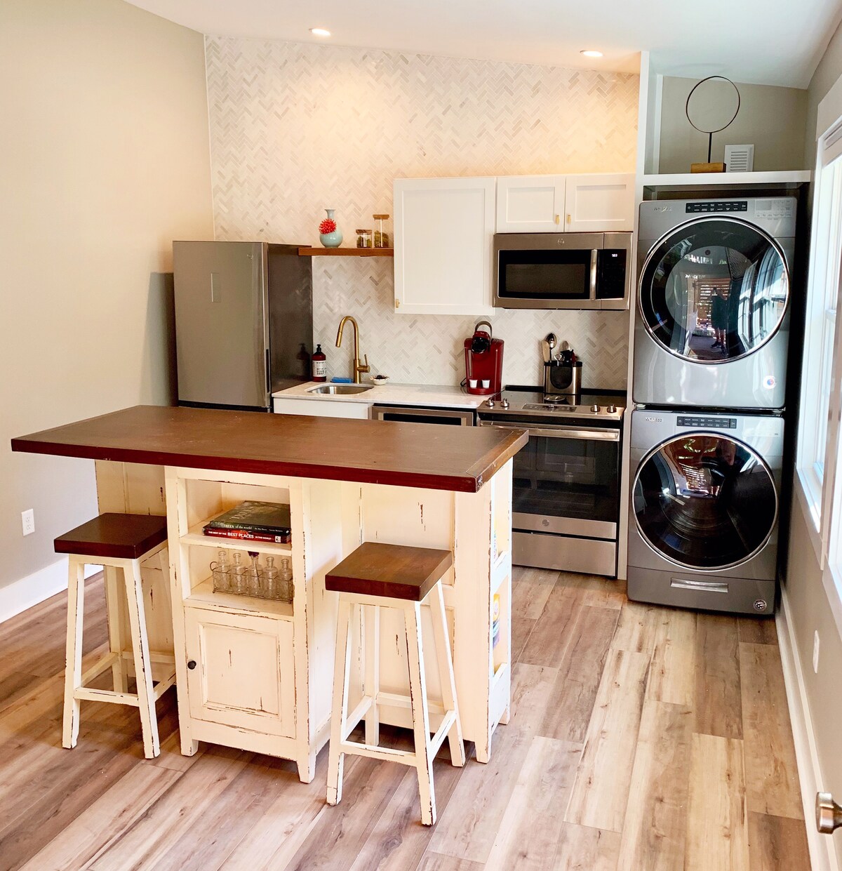 ¡Descubre tu soleado estudio bohemio de mediados de siglo en Park Circle! Este espacio bellamente seleccionado se adapta cómodamente a 2-3 huéspedes con una cama tamaño queen y un sofá cama. Disfruta de un patio privado, un espacio de trabajo dedicado y una lujosa bañera con patas. Perfecto para una escapada con estilo, estás a pocos pasos de los mejores restaurantes y a un corto viaje en auto del centro y las playas locales. Disfruta de lo mejor de Charleston desde este refugio único y lleno de luz.