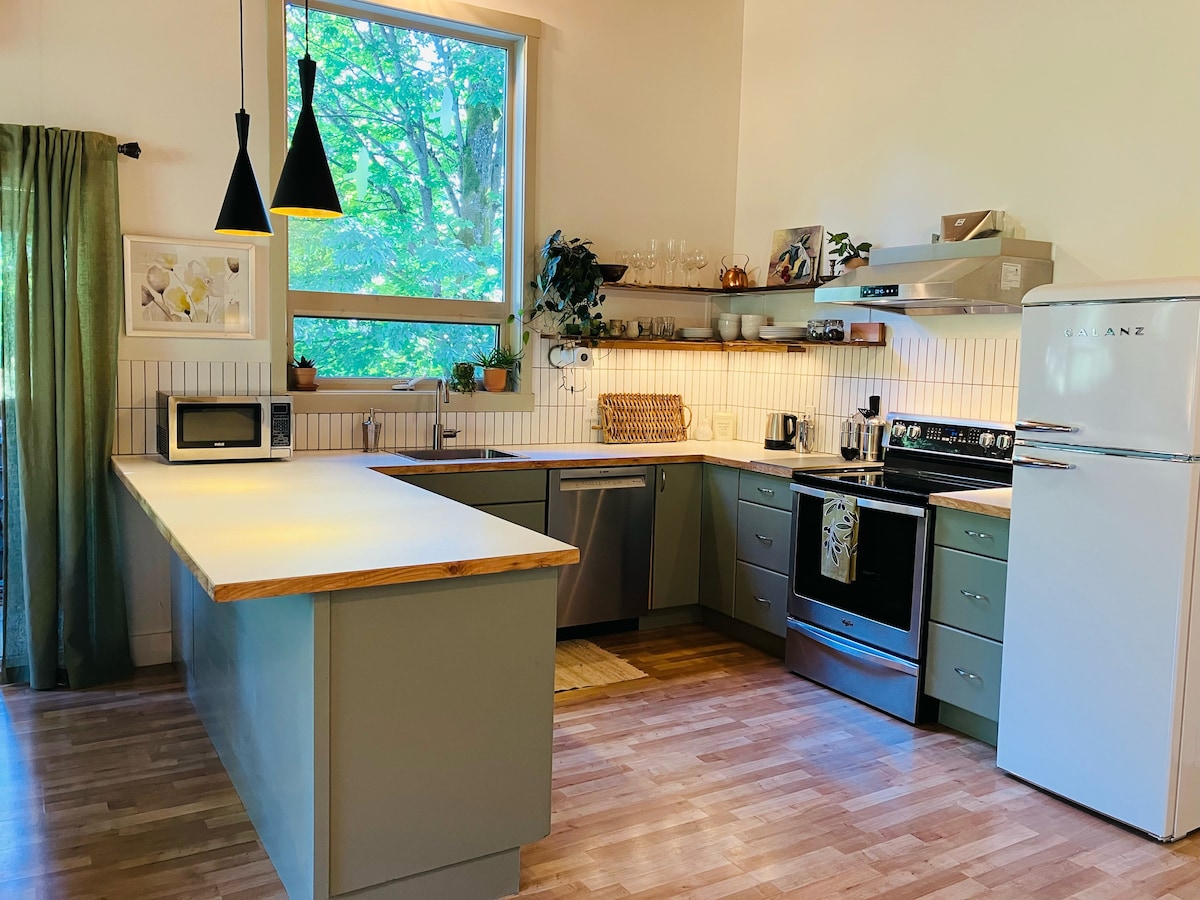 ¡Te damos la bienvenida a nuestro santuario en los árboles! Ubicado en lo alto del puerto de Ganges, enclavado entre los árboles, encontrarás tu santuario especial. Después de una noche de sueño tranquilo y silencioso, despierta renovado en la serenidad del bosque rodeado de luz natural y aromas forestales. Situada en 4 acres, nuestra casa es totalmente privada, pero a solo 3 minutos en coche de Ganges. Tranquilo y silencioso, ven aquí para relajarte después de un día completo de exploración.