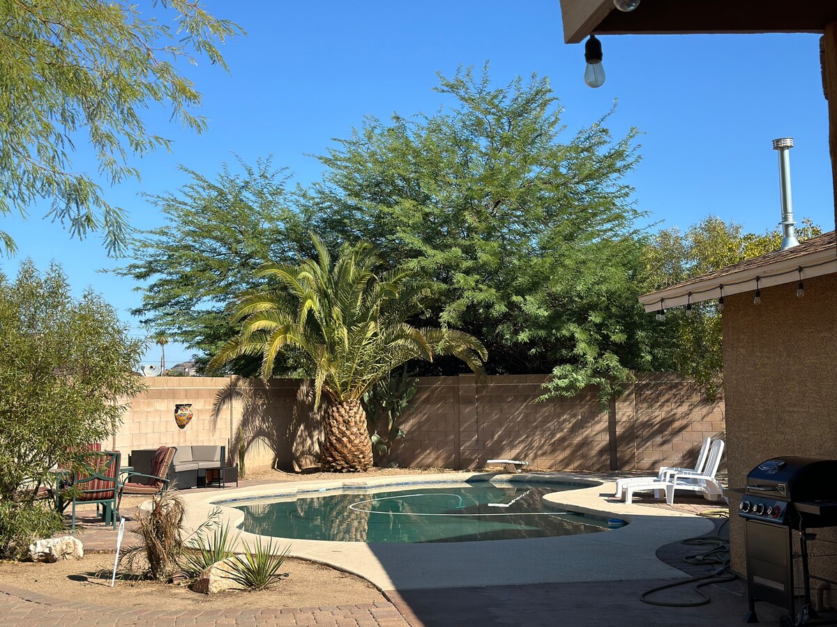 - Alojamiento de 4 dormitorios y 2 baños con piscina privada. - Ubicación céntrica en Phoenix. - Opciones de viaje de un día al Gran Cañón y a las rocas rojas de Sedona. - Acceso fácil a atracciones populares y rutas de senderismo. - Base perfecta para las aventuras en Arizona. - Piscina relajante y parrilla exterior. - Opciones de restaurantes y compras cercanas. - Ideal para familias y grupos. - Juegos de mesa, ping pong, cartas - Casa espaciosa y totalmente equipada. - Reserva ahora y comienza a planificar tu próxima escapada.