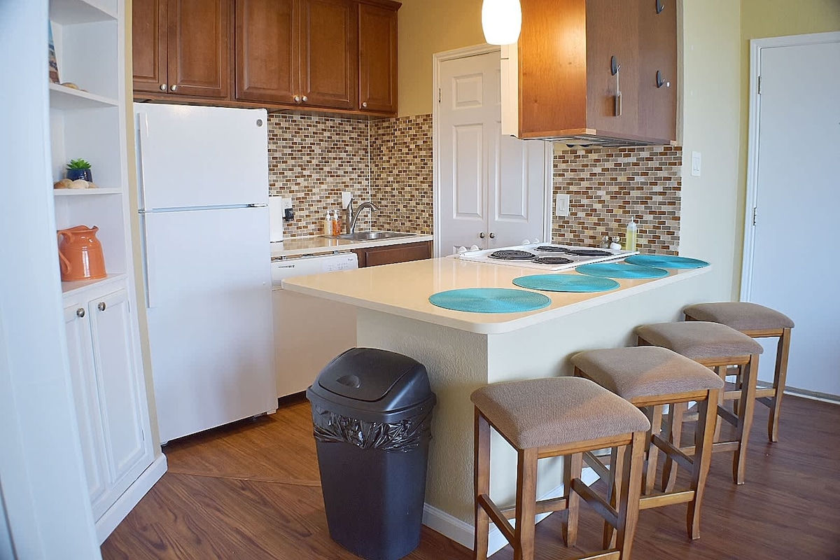 Welcome to Sol Studio! Just a 5 min walk to the beach! We are across the street from the new Brewster St Icehouse and a short walk to the new Sandbox beach bar. Perfect for up to 4 guests, including a queen-size bed and a convenient sleeper sofa. Our cozy studio features a vintage vibe you’ll love! Enjoy a fully equipped kitchen, TV with cable and streaming, as well as high-speed WI-FI. Shared amenities include a pool, hot tub, sauna, gym and more! Book now for a beach lovers getaway! 🌊