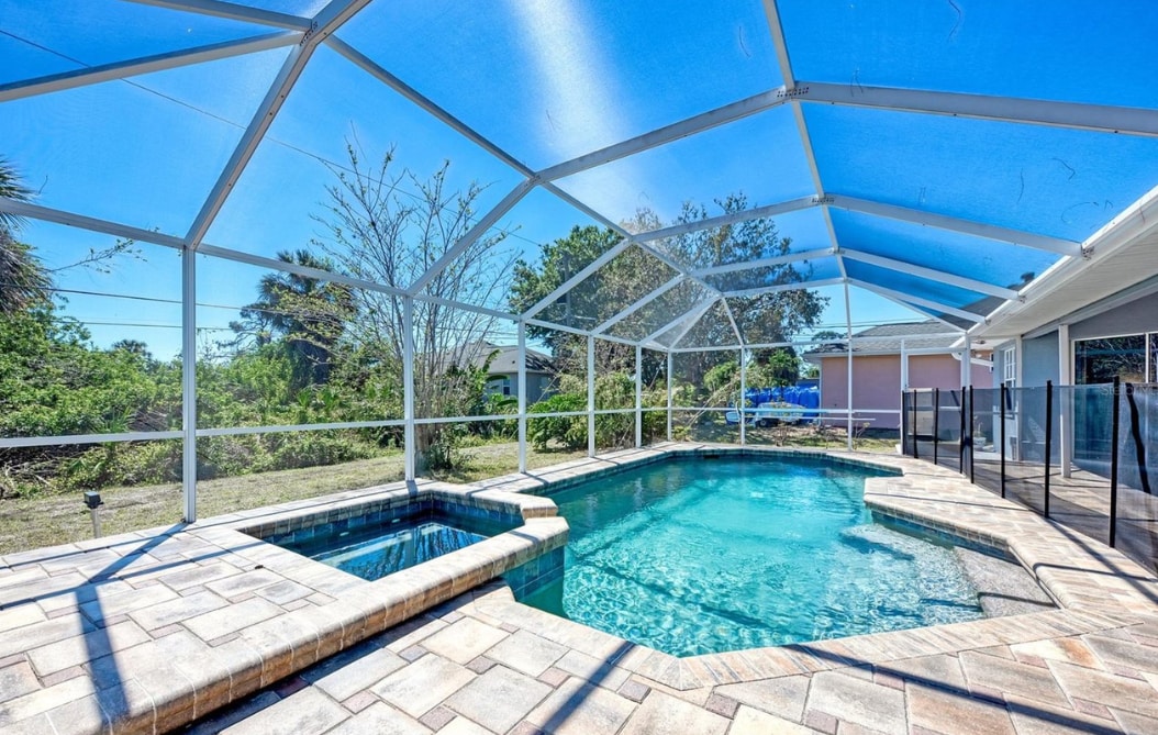 Esta lujosa y moderna casa tropical es el alquiler vacacional relajante perfecto para toda la familia o un grupo de amigos. Quédate para disfrutar de la piscina rodeada de vegetación y pasa tus noches en el jacuzzi privado iluminado. Ubicada a solo 10 minutos de la playa de Port Charlotte, a 15 minutos de las conocidas aguas termales Warm Mineral Springs y a 30 minutos de las famosas playas de Englewood y Venice. La espaciosa casa tiene 2 camas tamaño queen, 1 cama tamaño queen y litera doble, 1 sofá cama en la oficina, sofá en la sala de estar y 2 baños completos.