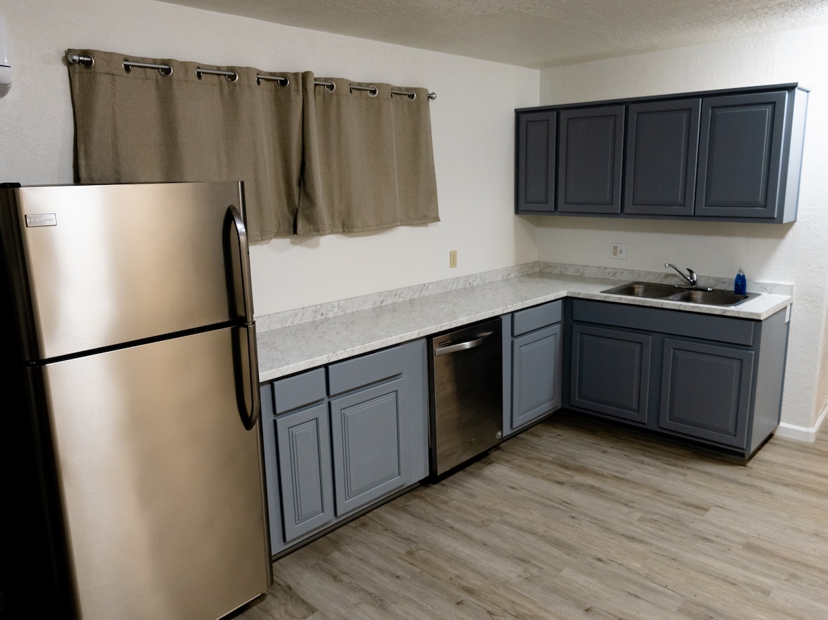 Casa de huéspedes recién reformada ubicada en North Valley, Albuquerque. ¡La ubicación central tiene acceso rápido a atracciones locales como el casco antiguo, el Centro Cultural Indian Pueblo, el centro de la ciudad, el Balloon Fiesta Park y más! ¡Más de 30 cervecerías, bodegas y destilerías en un radio de 5 millas! Entrada privada y entrada para coches. 2 dormitorios con camas tamaño queen y sofá cama para 6 personas. La cocina pequeña tiene nevera, lavavajillas, microondas, placa eléctrica, plancha eléctrica y Keurig. Patio cubierto con zona de asientos exterior.