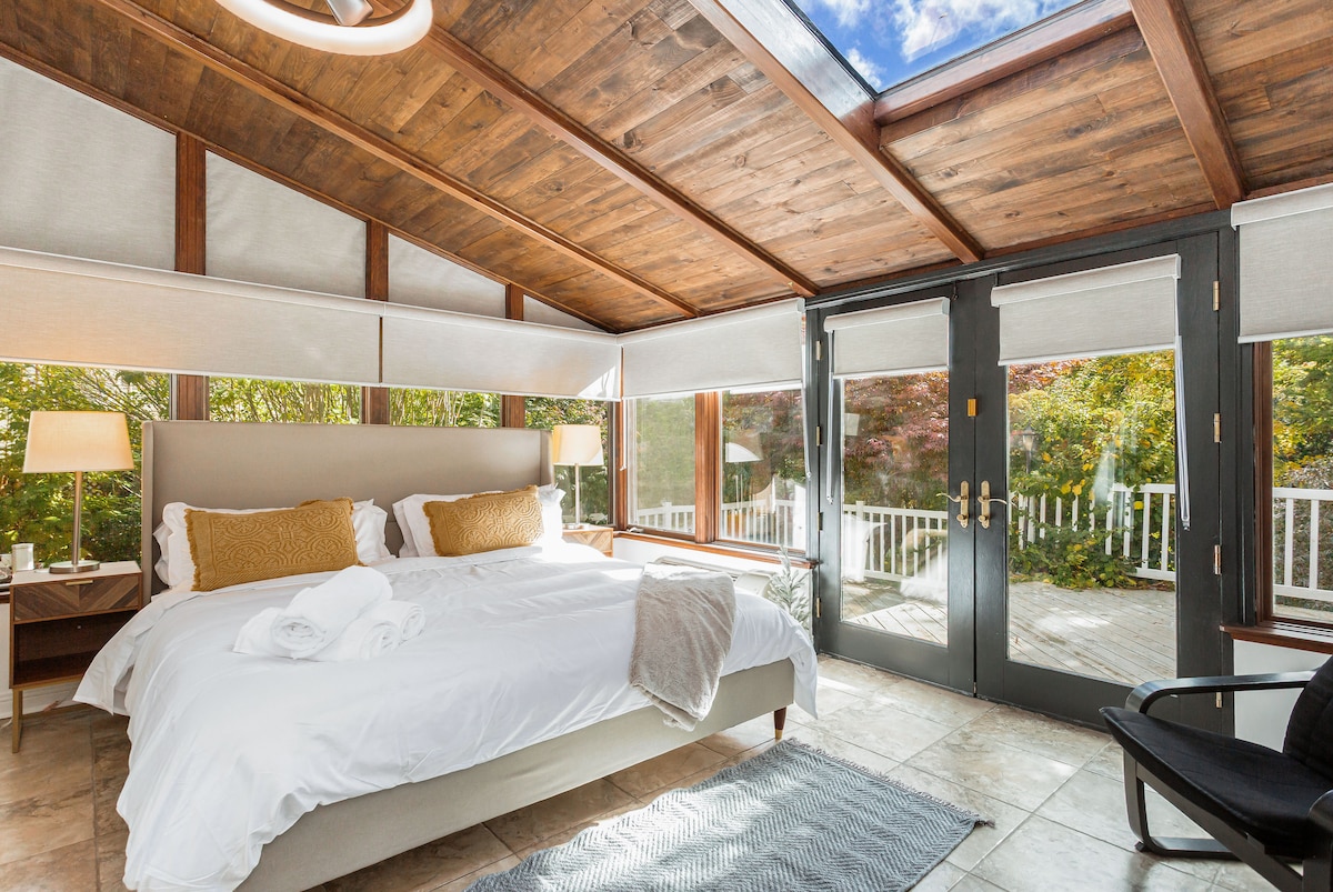 Un increíble espacio de escapada para dos y tu perro en el hermoso lago Musselman, cerca de Toronto, pero se siente como si estuvieras en los Muskokas. Esta cabaña rústica de diseño de un dormitorio es la casa de campo original de la que creció nuestra casa. Siéntate en el muelle o en tu patio para ver los espectaculares atardeceres. Tome un café en el patio trasero y observe el amanecer sobre 160 acres de senderos por su puerta trasera. Este es tu refugio con Internet de alta velocidad, cocina completa y comedor para disfrutar de la vida de campo.