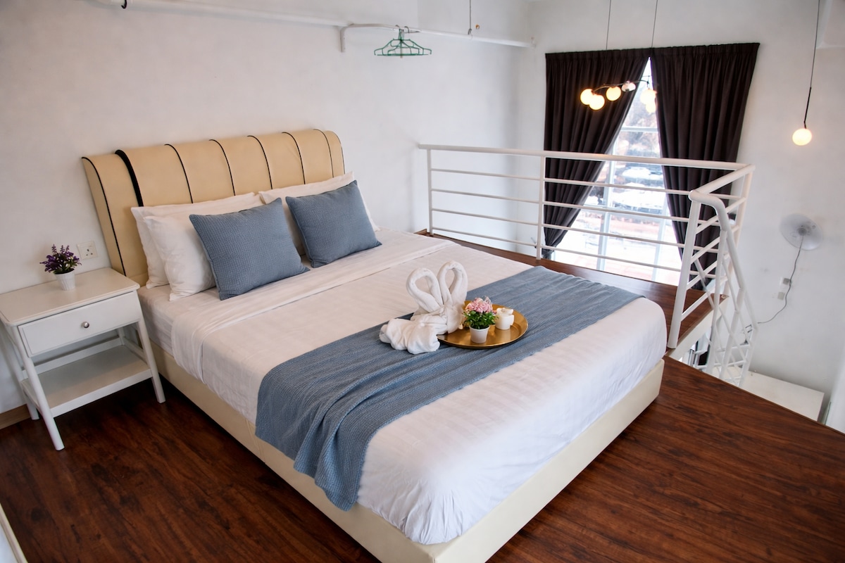 Urbano Homestay es una suite de diseño moderno-loft totalmente amueblada que tiene un dormitorio principal y un baño adjunto y una habitación con dos camas con un baño externo ubicado en la planta baja de la suite. La ubicación está perfectamente en el corazón de la zona comercial de Georgetown y aproximadamente a 16 km al noreste del aeropuerto internacional de Penang. Se trata de una zona residencial respetuosa con el medio ambiente donde hay restaurantes, tiendas convenientes, clínicas las 24 horas y cafeterías disponibles.