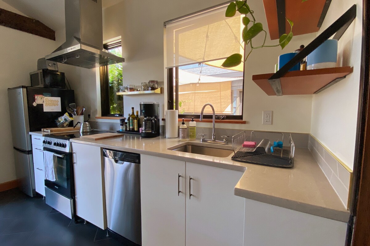 ¡Ahora con consumo cero de energía! ¡Dwell tiene 18 paneles solares que cubren más electricidad de la que utiliza el edificio! Nueva casa moderna con cocina gourmet. Disfruta de la ducha de azulejos con agua caliente sin fin, televisión inteligente y muebles acogedores. A pocos pasos del pueblo de Woodstock con Double Mountain Brewing, New Seasons. Fácil acceso al transporte público, o siéntate y relájate en el patio con chimenea. Casa de huéspedes luminosa y tendrás el alojamiento solo para ti. Hay un patio vallado que es bastante privado.