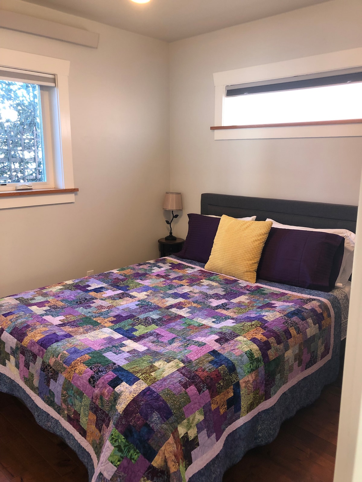 ¡Ven a alojarte en nuestra nueva y encantadora casa de huéspedes! NO es un espacio en el sótano. Cuenta con un dormitorio de verdad (no un estudio) y cocina completa. La casa de huéspedes Silver Star está en nuestro patio trasero, pero muy separada, con su propio acceso a la calle de la ciudad. Mucha madera preciosa y un ambiente acogedor. Estamos a 1 manzana de la fabulosa Alberta Arts St., pero lo suficientemente lejos como para que sea tranquilo aquí. ¡Perfecto! A poca distancia a pie de tiendas y restaurantes. También es fácil llegar a cualquier punto de la ciudad. Hay un sofá cama doble oculto en el espacioso salón.