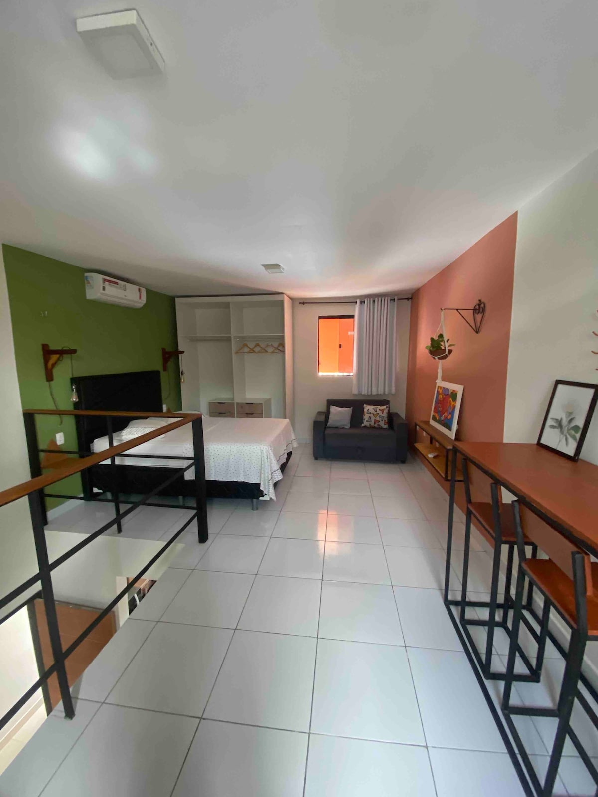 Ideal para quienes necesitan internet rápido, muy buena ubicación cerca del centro de la playa de Xepa y la playa de Maceió, cocina equipada con minibar de 127 l, cocina de 2 hornillas, licuadora, sandwichera, aire acondicionado de 12 mil btus, cafetera dolce gusto, smart tv, caja fuerte y estacionamiento. El espacio con cama queen en el entrepiso y un sofá cama en la sala. Baño con ducha eléctrica y secador de pelo, ya viene juego de toallas de baño y cama. Balcón con mecedora y tumbona.