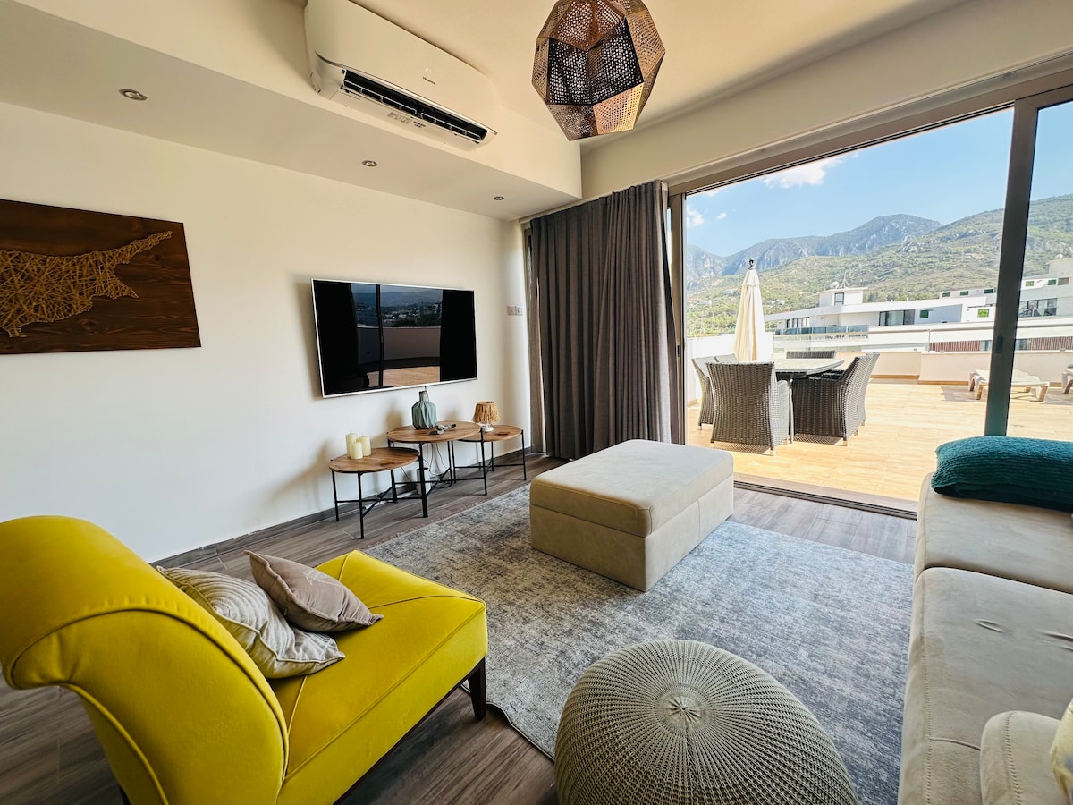 Ático completamente nuevo con una ubicación única en el hermoso faro con piscina privada de agua salada en la terraza de la azotea. Hermosa ubicación en la costa de Esentepe con vistas de 360 grados al mar y a las montañas y a 3 minutos a pie de la playa de Esentepe. Aquí podrá disfrutar de días de ocio en un amplio apartamento de 110 metros cuadrados con 3 dormitorios y 2 baños. Gran terraza en la azotea con piscina de agua salada, parrilla y barbacoa con hermosas vistas. Las instalaciones cuentan con gimnasio, hamam, sauna y cine (aún no terminado)