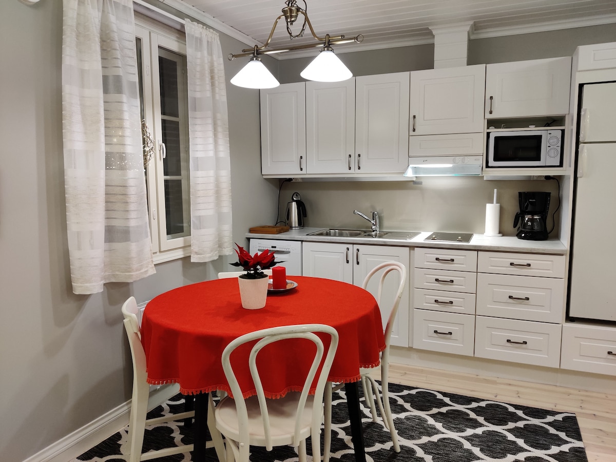 La propiedad se encuentra en una zona residencial tranquila, en el patio de una casa unifamiliar, a unos 15 km del centro de Oulu. El apartamento está en perfecto estado, tiene capacidad para dos personas y un colchón inflable para una tercera, si es necesario. En la segunda planta hay un dormitorio con cama de matrimonio. Otros aspectos destacables: Hay una carpeta en la mesa del pasillo con algunas instrucciones para el inquilino con respecto al apartamento, asegúrate de leerla, gracias.