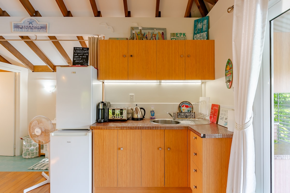 The Nutty Bungalow is an elegantly fitted out space and on an organic Macadamia nut farm.. strolling distance to long quiet beaches. .. a place of peace and simplicity and comfort... whatever the weather or season or reason. Open fireplace with wood provided for snuggly nights. Big, huge smart TV ... On the same property as my house but private with an orchard in between & far enough that noise doesn’t travel between much. Dogs are welcome if they've been discussed & the dog rules agreed to..