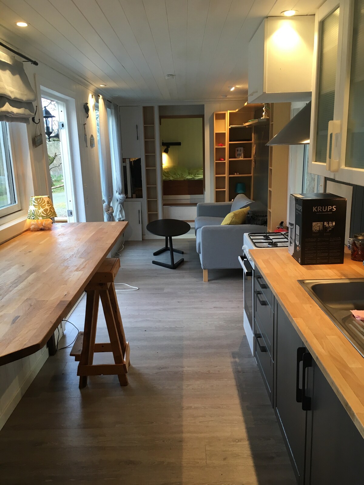 Enjoy the nature when you stay in this unique place. It offers the comforts of a fully functional tiny home with outdoor sauna and seamless indoor-outdoor integration, the perfect balance of comfort and nature. Explore hiking trails, friendly playgrounds, bike paths perfect for kids. A short walk away, enjoy a lake with sandy beaches and outdoor adventures. Walking distance: Fyresvatn Lake (beach) – 5 min, Hamaren Activity Park & Tretoppvegen – 25 min, 2 min drive to Shop in the town center.