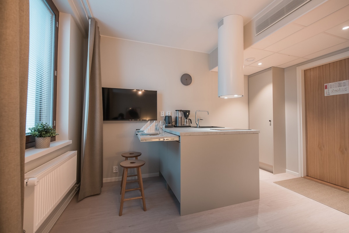 Habitación doble con comodidad similar a un hotel y un toque de sensación hogareña. Todas las habitaciones están equipadas de acuerdo con los estándares del hotel e incluyen servicios para cocinar ligero. Como tal, es adecuado para viajeros de negocios, así como para viajeros de placer. Acceso a las funciones del hotel a través del código clave y todas las habitaciones incluyen WiFi. Esta ubicación está en el centro de Raahe, a solo unos cientos de metros de la orilla del mar.