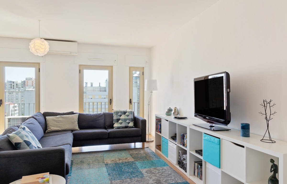 Moderno, acogedor y luminoso, este apartamento está situado en el corazón de Lisboa, a 5 minutos a pie de la estación de metro y tren de Entrecampos, con conexión directa a Sintra. Ideal para parejas, familias o amigos, fue diseñado para ofrecer comodidad y una estancia inolvidable. . 1 dormitorio con una cama doble. Litera para 2 personas (ideal para niños o amigos) . Estacionamiento gratuito en garaje (en la calle es de pago) . A 5 minutos a pie del metro A 10 minutos en auto del aeropuerto. . WiFi rápido. . Cocina equipada - Aire acondicionado