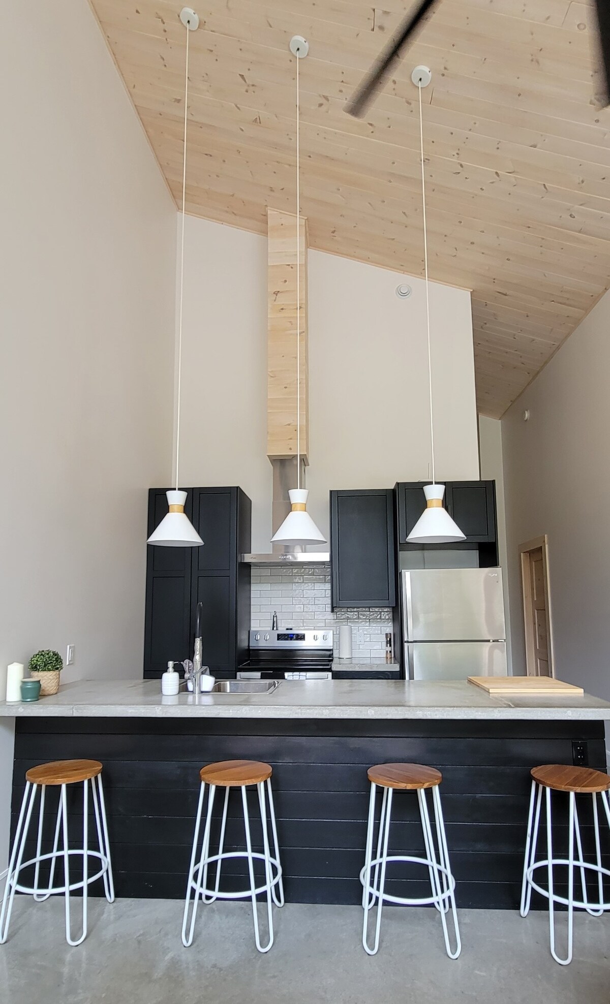 Nueva cabaña moderna que es la mejor escapada de la ciudad, donde la naturaleza está a tus pies. Un lugar donde puedes relajarte y desconectar para cambiar tu estado de ánimo. Disfruta de la acogedora sala de estar, disfruta de noches de cine junto al televisor inteligente de 85 pulgadas. ٍRelájate en un cómodo dormitorio con baño privado de diseño moderno. El baño es de planta abierta sin puerta, pero la ducha y el inodoro están fuera de la vista para tu privacidad. Cocinar tus comidas es divertido en la cocina bien equipada. ¡También tenemos cargador de vehículos eléctricos!