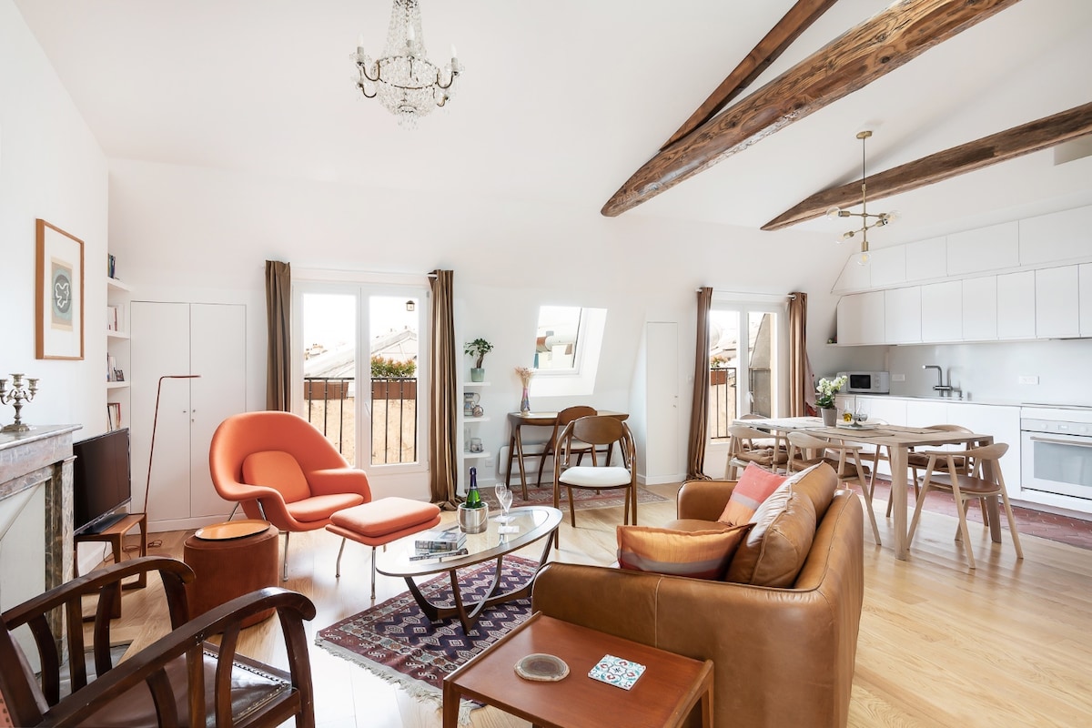 Disfruta de una auténtica estancia parisina en nuestro apartamento de 3 habitaciones elegantemente diseñado por un reconocido arquitecto. Combinando el encanto histórico y la comodidad moderna, esta suite es un remanso de paz en medio del bullicio de París. A solo unos pasos, explora boutiques de diseñadores y sitios emblemáticos. Relájate en un espacio refinado, perfecto para los amantes de la cultura y el estilo. ¡Reserva ahora el alojamiento de tus sueños! #ParisChic #MaraisMagic