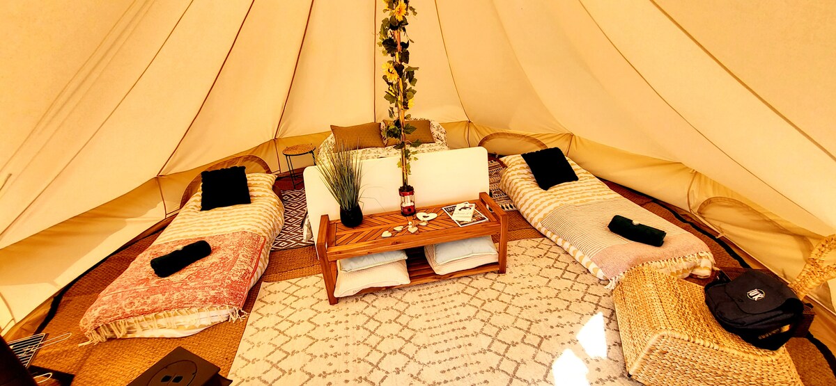 Magnífica y exclusiva tienda de campaña con forma de campana y vistas ininterrumpidas.