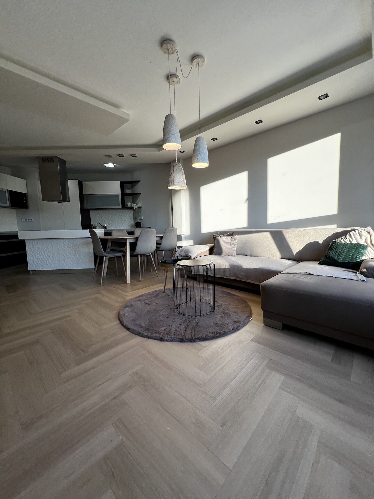 Amplio y moderno apartamento ideal para familias, amigos o viajeros de negocios. Disfruta de wifi rápido, una luminosa cocina americana y una sala de estar totalmente equipada para estancias cortas o largas. Dos cómodas habitaciones (cama tamaño queen + dos camas individuales), un sofá cama y baño e inodoro separados con capacidad para 5 huéspedes. Ubicado en una tranquila zona residencial cerca de un lago, en un edificio moderno con recepción privada. Estacionamiento gratuito disponible cerca de ti.
