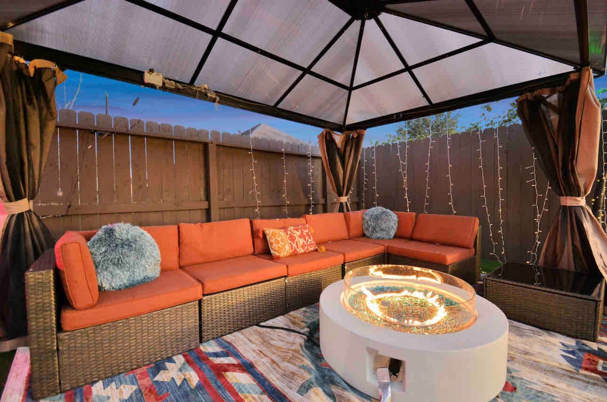 Escápate a un impresionante oasis moderno donde el lujo se encuentra con el juego. ★ 4 dormitorios elegantes | 3,5 baños modernos | Capacidad para 16 huéspedes ★ Santuario privado en el patio trasero: jacuzzi • cenador • mesa de fuego ★ Sala de estar moderna de concepto abierto: TV inteligente de 75" y chimenea ★ Suite principal tipo spa: bañera profunda • Ducha a ras de suelo • Estación de trabajo dedicada: Internet WiFi de alta velocidad • Cocina de chef totalmente equipada • Hamaca al aire libre y luces de cuerda • Excelente ubicación: a minutos del centro de Houston - Artículos de tocador y artículos básicos de cortesía
