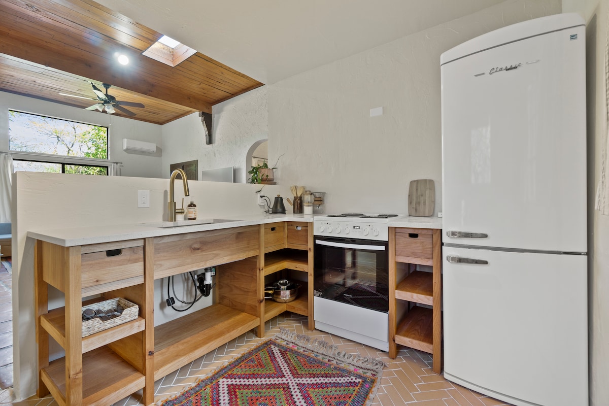 Esta casita única ha sido totalmente remodelada con un excelente encanto español europeo, con una elegante cocina espaciosa, baño de 3 piezas, cama con dosel románticamente cubierta vestida con lujosas sábanas, una chimenea de leña, pintoresco patio de jardín con fuente y mesa de bistró, una palapa privada en la azotea con vistas completas al mar y columpio de cama tamaño queen y taburetes con percha de comedor, etc. ¡Todo a poca distancia de escalones que conducen a nuestra playa privada para kilómetros de caminata cuando la marea está baja!