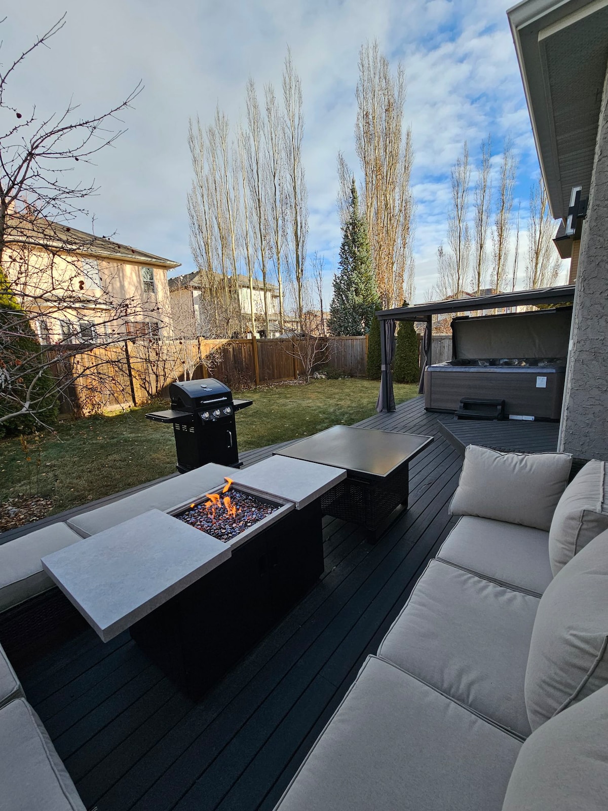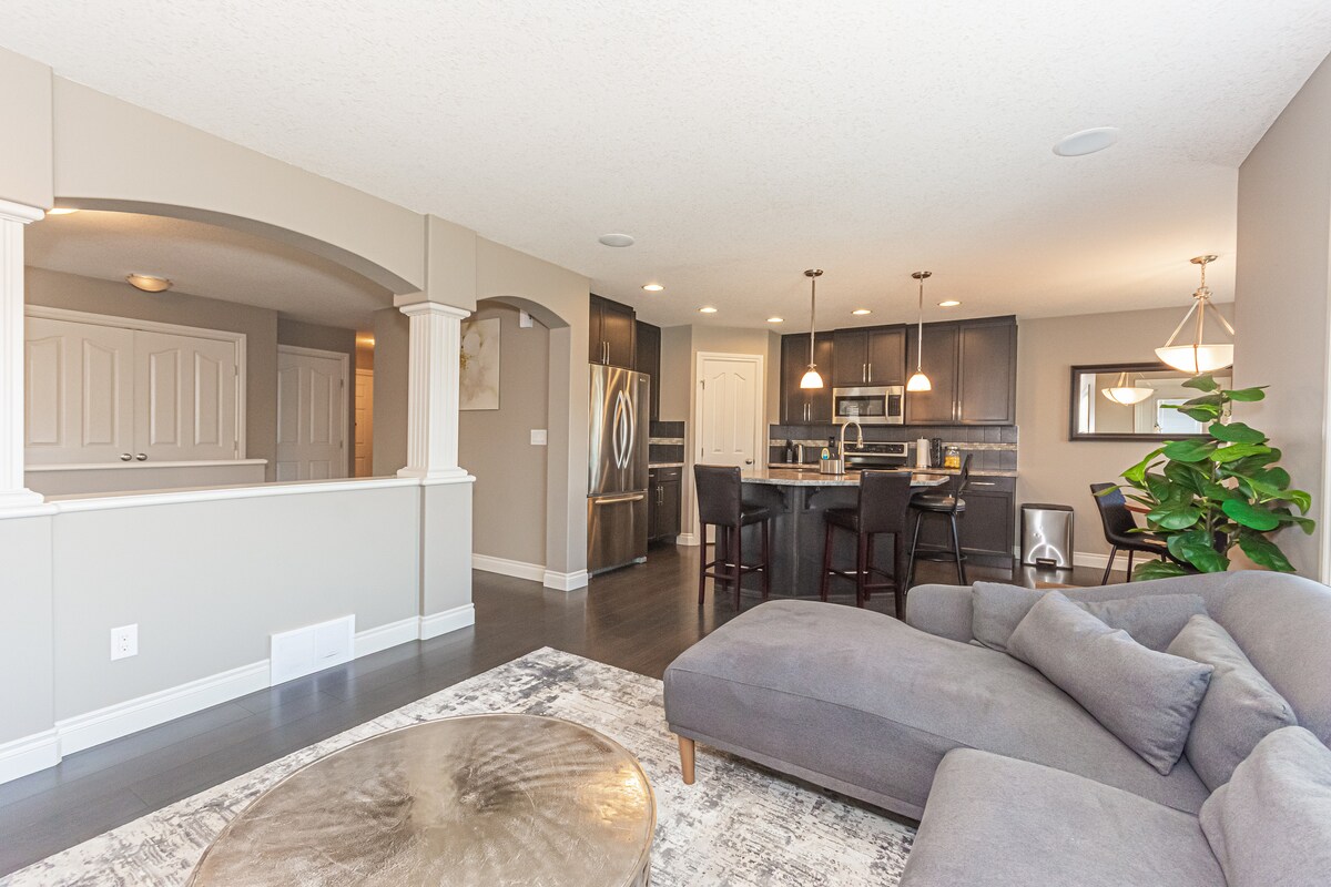 ¡Bienvenido a nuestro lujoso refugio de 5 dormitorios y 3,5 baños en un barrio de lujo! Disfruta de una sala de cine en la casa, una mesa de billar convertible y un sereno jacuzzi. El dormitorio principal cuenta con un televisor de 75 pulgadas, iluminación RGB y un baño tipo spa. Entra en el patio con una mesa de fuego, jacuzzi y amplios asientos. La vibrante iluminación RGB del patio trasero crea el ambiente. A poca distancia a pie de un campo de golf y a 5 minutos en coche del centro comercial West Edmonton Mall. ¡Experimenta el lujo y la comodidad en este lugar exclusivo!