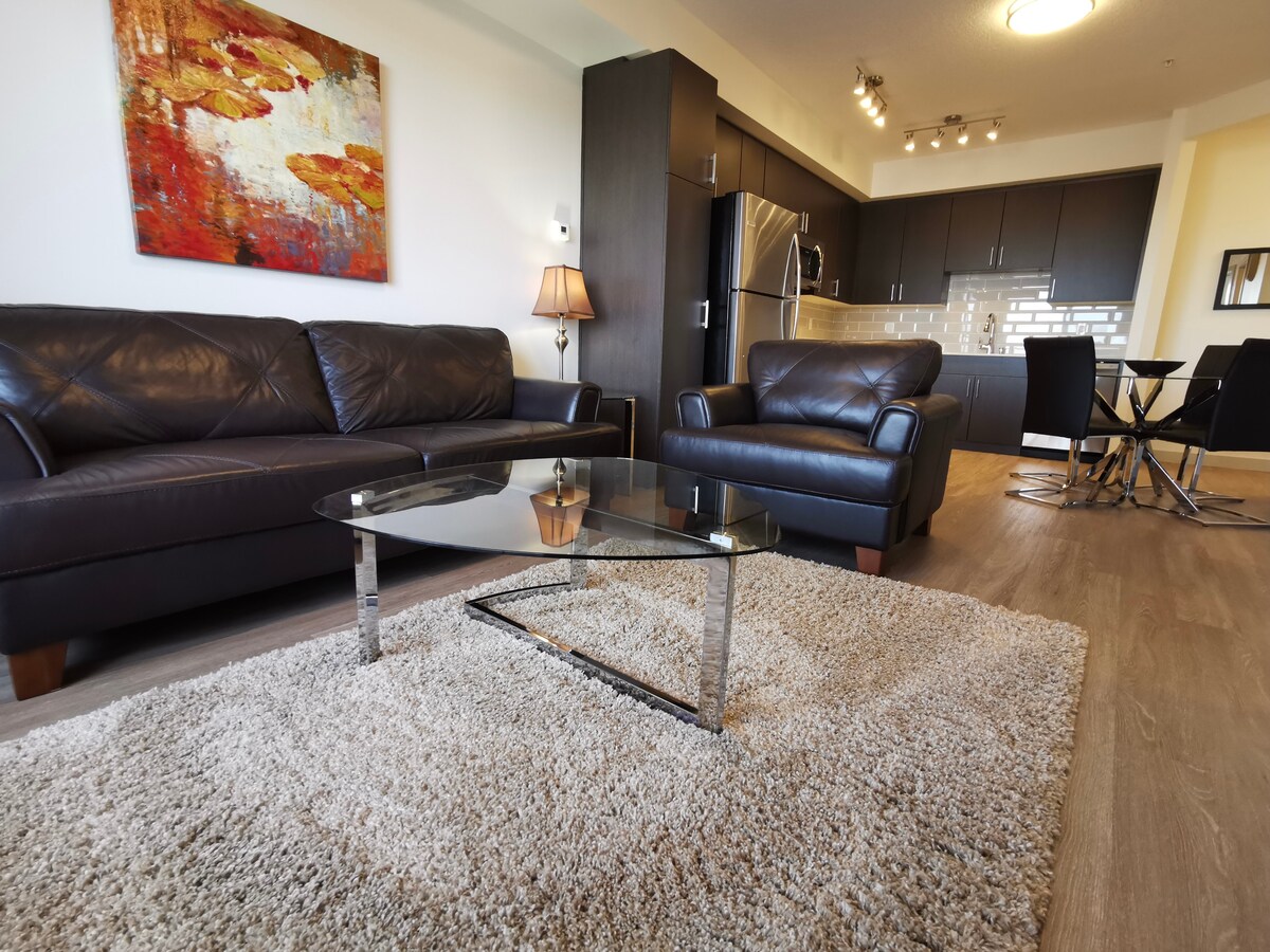 Situado en el corazón de Edmonton, este espacio está diseñado para la comodidad y la belleza. Las características incluyen: WIFI (Netflix y Prime), cama tamaño king con cubrecolchón, área de oficina, cocina y área de balcón. Edificio 100% para no fumadores con administración en el lugar con estacionamiento disponible. Relájate en este tranquilo y elegante apartamento en un edificio 100% para no fumadores.