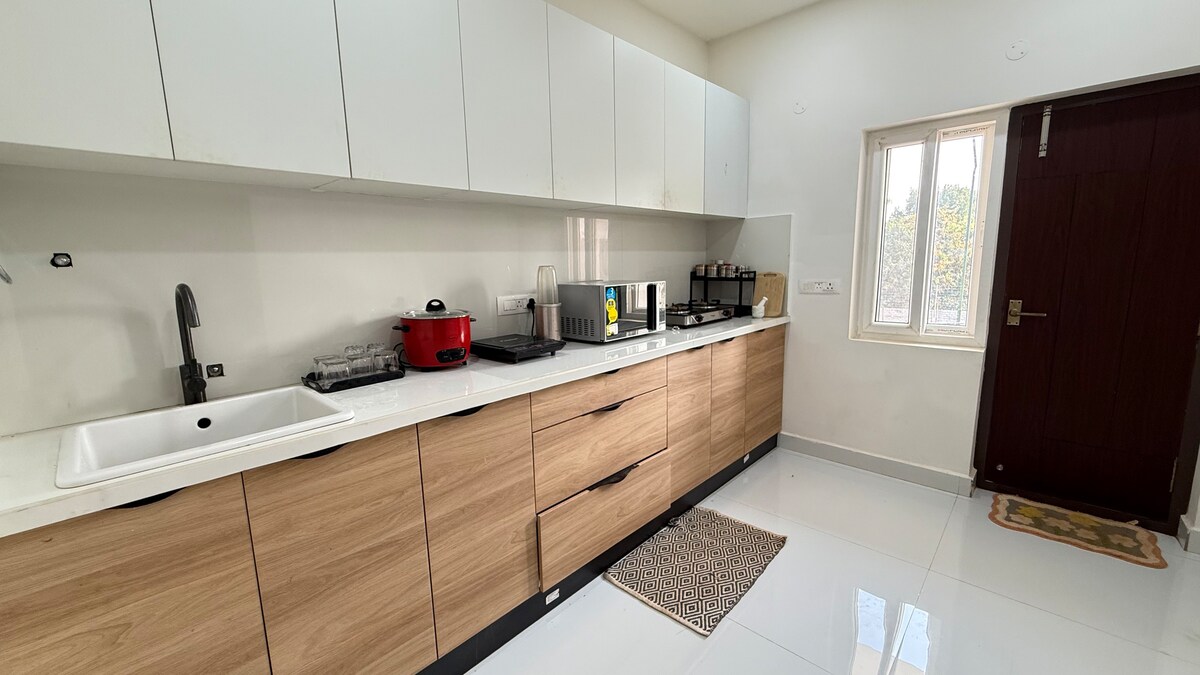 Experimenta la comodidad del hogar con un toque de elegancia en este 2BHK bellamente diseñado. Perfecto para familias, viajeros de negocios o grupos de hasta 6 personas, el alojamiento ofrece una estancia tranquila y lujosa con amplios interiores, comodidades modernas y un ambiente tradicional acogedor. Ubicada en una zona privilegiada de Vijayawada, la propiedad ofrece fácil acceso a Just off NH-16 y a la autopista de Hyderabad, a 15 minutos de la estación de tren, parada de autobús, a 20 minutos del templo Kanaka Durga, a 30 minutos del aeropuerto y Amaravathi.